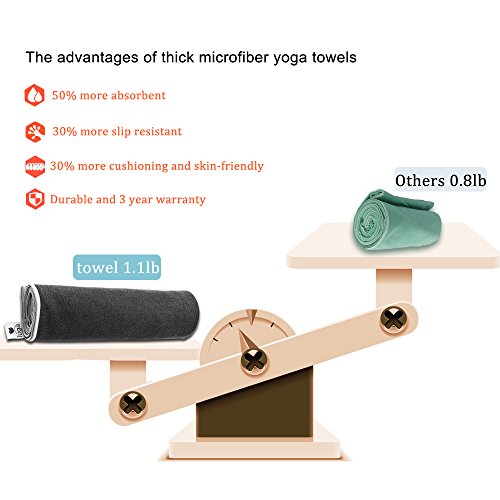 Extra size: 183 X 65 cm yoga towel is the perfect size for almost all yoga mats. It’s light-weight but 30% thicker than average yoga towels, the textured weave strikes the perfect balance between grip and softness. No need to go buy a hand towel. We've got you covered. Because we love adding value to you and your practice.