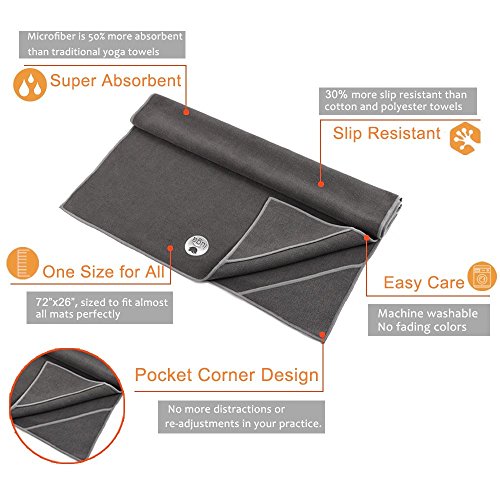 Corner Pockets Design: No more distractions or re-adjustments, simply hooking the corner pockets underneath your mat, so when fully engaged, the towel is taut and stays firmly in place, which allows you to fully focus your mind and body on yoga practices.
