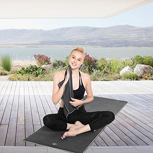 IUGA Yoga Towel Extra Thick Hot Yoga Towel + Hand Towel 2 in 1 Set, Corner Pockets Design to Prevent Bunching, 100% Microfiber -Non Slip, Super Absorbent and Quick Dry, (UK-Gray)